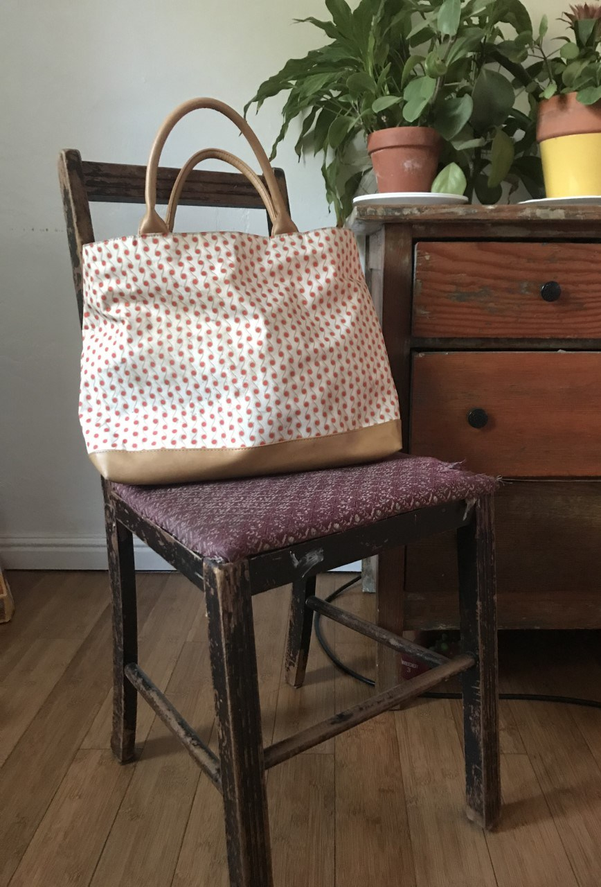 (Picture above: One of the perks of shopping daily, and on a budget, is the small grocery bag that you need. It’s a little rough around the edges because it was found in a Free Pile, but it’s still cute and very sturdy. Plus it fits in my bike basket perfectly. 🙂